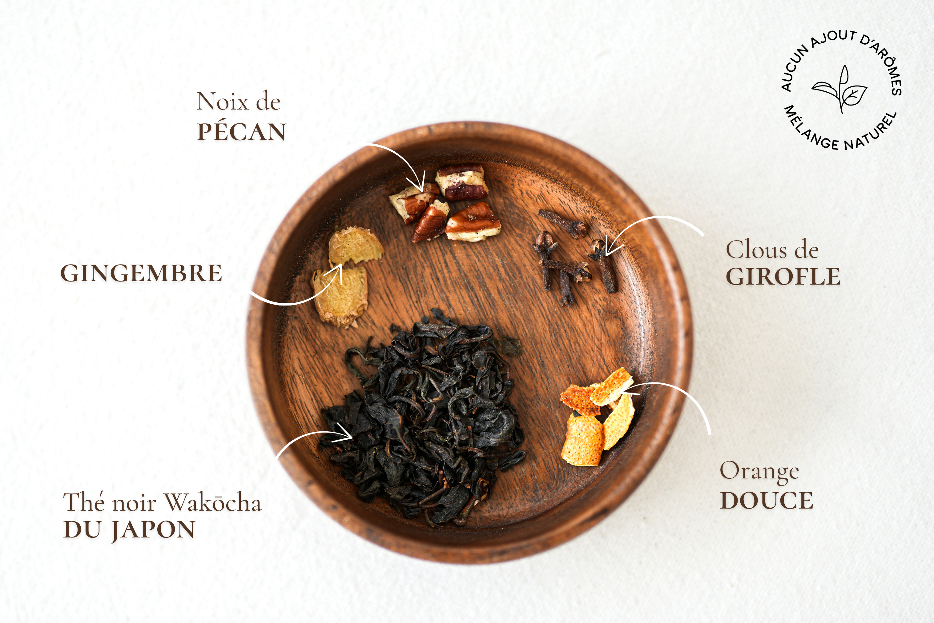 Pour la texture et le gourmand, on y ajoute de la noix de pécan. Il en ressort une délicieuse saveur de pain d’épices, toujours sans arômes ajoutés. Le parfum de contact octroyé par ces ingrédients naturels se bonifiera encore avec le temps.